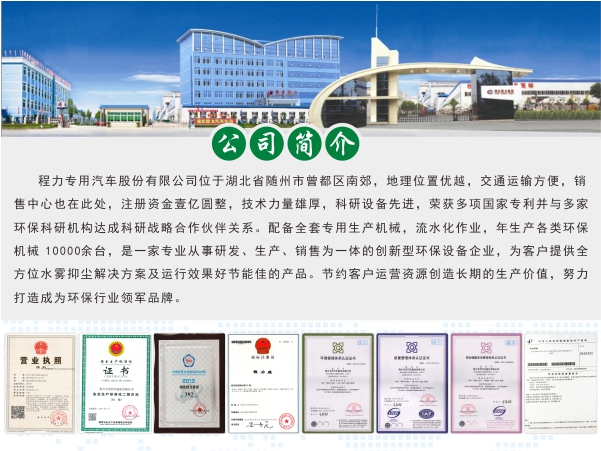 程力專用汽車股份有限公司是一家擁有“中國馳名商標”“湖北名牌”“國家高新技術企業”“中國民企500強”的大型汽車制造集團,企業先后通過 ISO9001-2008質量管理、ISO 14001環境管理、OHSAS18001職業健康安全管理等體系認證、3C強制性認證、GJB9001B—2009國軍標認證和保密認證(國家三級),產品暢銷全國29個省市自治區,并出口俄羅斯、新西蘭、安哥拉等30多國家和地區。主導產品市場占有率為20%以上,到如今的產品出口遍及世界30多個國家,環衛車銷量連續三年占全國第一位.