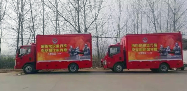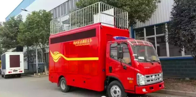程力消防宣傳車滾動屏:主要由卷動機械系統、卷動及定位控制系統、燈光系統和長達約10米的彩色宣傳燈光片組成。在使用時只需按下啟動按鈕,系統就會不厭其煩的正轉、反轉和停頓,向人們展示其中的火災案例的豐富內容,三個滾動宣傳屏分別展示國外、國內,本省市的近年來的重大火災。