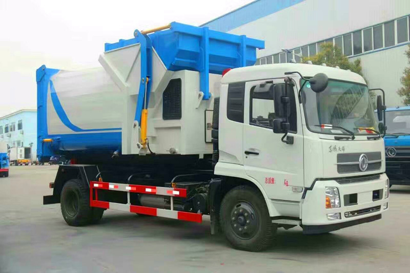 車廂可卸式垃圾車,是采用東風商用車生產的DFL1160BX1V型底盤改裝的生活垃圾轉運車輛。