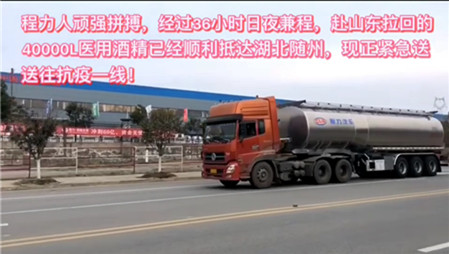 正月初六,我市各大醫院已經沒有醫用酒精了,作為專汽之都的頭號老大程力專汽,也就是我們的阿羅總經理派專車日夜兼程前往山東運酒精,并第一時間運回隨州捐獻給各大醫院。