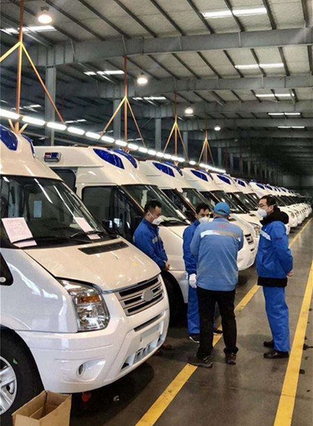 安排人員加緊生產并完成中央訂購的600臺負壓防疫救護車。