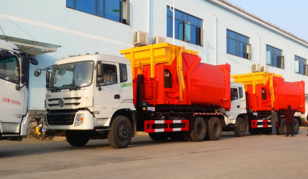 2、該車由液壓控制系統來完成垃圾箱的吊起上升及自卸功能,降低了工人的勞動強度和改善了工作環境。 3、采用國標厚度武鋼優質碳板,邊3底4骨架車廂,骨架車廂按照耐受壓力最大的外框式優化設計制作。縱、橫梁骨架及頂板骨架全部采用優質鋼材壓、拉成型。配備液壓裝置,駕駛員在駕駛室內完成垃圾箱裝卸工作 4、此車主要特點是貨斗與車體分開,能實現一臺車與多個貨斗聯合作業,循環運輸,充分提高了車輛的運輸能力,特別適用于短途運輸,如環衛部門對城鎮垃圾的清理、運輸等。 5、垃圾斗的噴涂顏色及形狀可依據客戶要求噴涂。 |