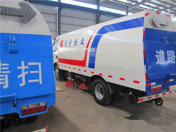 東風多利卡掃路車帶掃盤4把,江鈴副發動機,意大利馬達,施耐德控件開關,臺灣電磁閥組,免維護自分離式離合器,免維護風機,不銹鋼水箱,不銹鋼垃圾箱,尾部LED箭頭燈