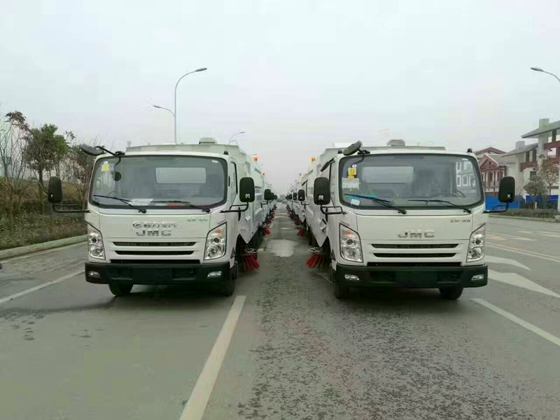清掃寬度:2.6-3.2m,水箱容積:2.5立方米,垃圾容積:4.5立方米。 1、中置4掃盤,江鈴五十鈴副發動機(JX493G,57KW),三洋擺線馬達,不銹鋼水箱,海普瑞斯電磁閥組,無級變速自動離合器,控制開關(法國施耐德),北京風機,液壓油管(廣州天河),灑水電子水泵(上海加興水泵)液壓缸(上海潤島),尾部LED箭頭燈 2、選裝倒車影像作業監控;前沖后灑(杭州威龍灑水泵),或前置綠化炮;洗車卷盤;帶雪鏟 3、液壓油泵采用意大利原裝進口;電磁閥采用德國原裝進口;液壓管路采用德國標準技術密封結構形式,關鍵控制部件采用法國施耐德技術原件,使用壽命長,穩定可靠,故障率低;液壓元件采用集成疊加設計,駕駛室電液集中控制,操作方便;掃盤有防碰撞 自動避讓功能,可根據地面泥沙嚴重程度及行車速度選擇掃盤的清掃方式;吸嘴為后置浮動式,可自動調節適應地面凹凸不平的狀況;可調節的霧狀噴灑水壓塵,在節水的同時消除二次污染。 |