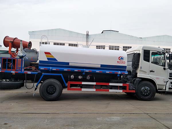 功能配置:帶前部沖洗路面噴灑裝置、后部扇形降塵噴灑裝置,兩側面噴灑裝置,帶后部工作平臺、平臺上安裝綠化灑水炮(炮噴射形狀可調),可調直沖狀、大雨、中雨、毛毛雨,可連續調節,最大射程可達28米,垂直吸程6.5米,揚程14米,另加裝高效率車載式風送噴霧機,噴藥炮霧化效果好,可遠程噴霧,水平射程達25米。帶消防接口、自流閥,可自吸自排。