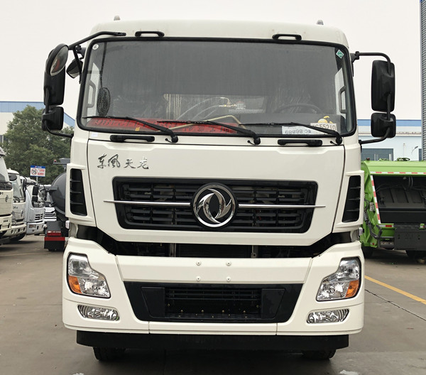 東風18方壓縮垃圾車配置: 底盤:平頭帶臥駕駛室,后雙橋,可隨底盤選裝新款/舊款駕駛室,屬高端壓縮垃圾車。標配康明斯290馬力或350馬力(D6.7NS6B290/350)發動機,百公里油耗39.65 L。8檔變速箱,5T前橋,10T后橋。10.00-20鋼絲胎,整車質量可靠,外觀大氣、美觀。