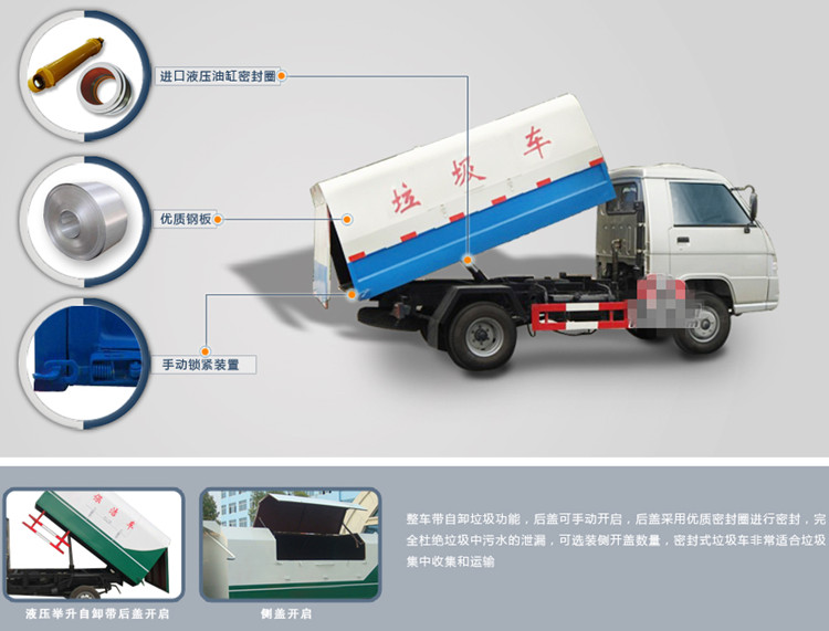 1、該車小巧玲瓏,美觀大方,機動性好,維修方便,是城鎮取代人力板車,收集大街小巷生活垃圾的理想運輸工具,為環衛部門垃圾收集專用作業車輛。